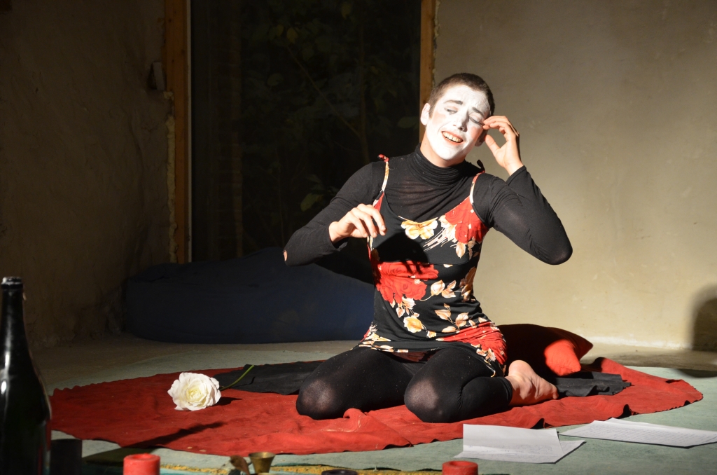 Commencer par la fin : La mort. Le désespoir, le suicide. Et se sentir vivant dans la pulsion de mort ! Ne rien comprendre, juste goûter. Se laisser traverser sans censure ni pourquoi… Et partir pour un voyage sans préparation et sans destination. Enlever petit à petit des « couches », se dévoiler, s’affranchir. Peur, euphorie, colère, vide, ridicule, lâcher prise… S’adresser directement au public, l’inviter au parcours… Et que le final soit léger. Quitter ses couches de costumes et de gravité pour un beau banquet de la vie !!!