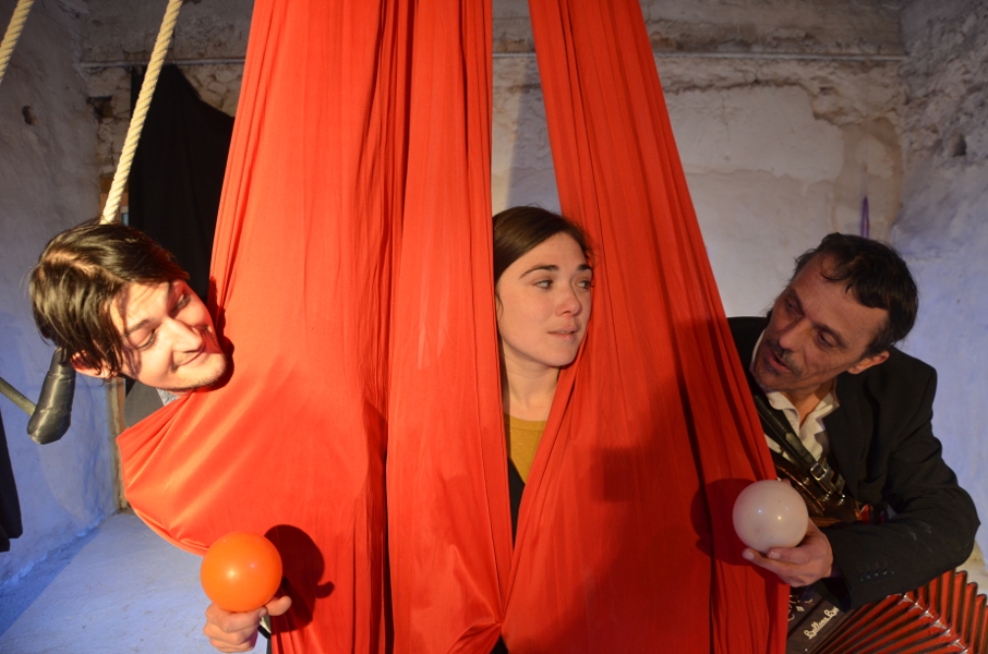 Si on a pu découvrir Cécile avec sa création « Puisque la Terre est ronde » en 2014 au Renard Mesquin (Trapèze), c’est aussi avec bonheur que nous l’avons accompagnée tout au long de l’été 2014 à « La Mine » à St Just d’Ardèche en trio avec Mathias le jongleur dit « le spéléologue ardéchois » et « Malino « le funambule que l’on ne présente plus. Cette magnifique performance a été particulièrement mise en valeur par le caractère exceptionnel du lieu .