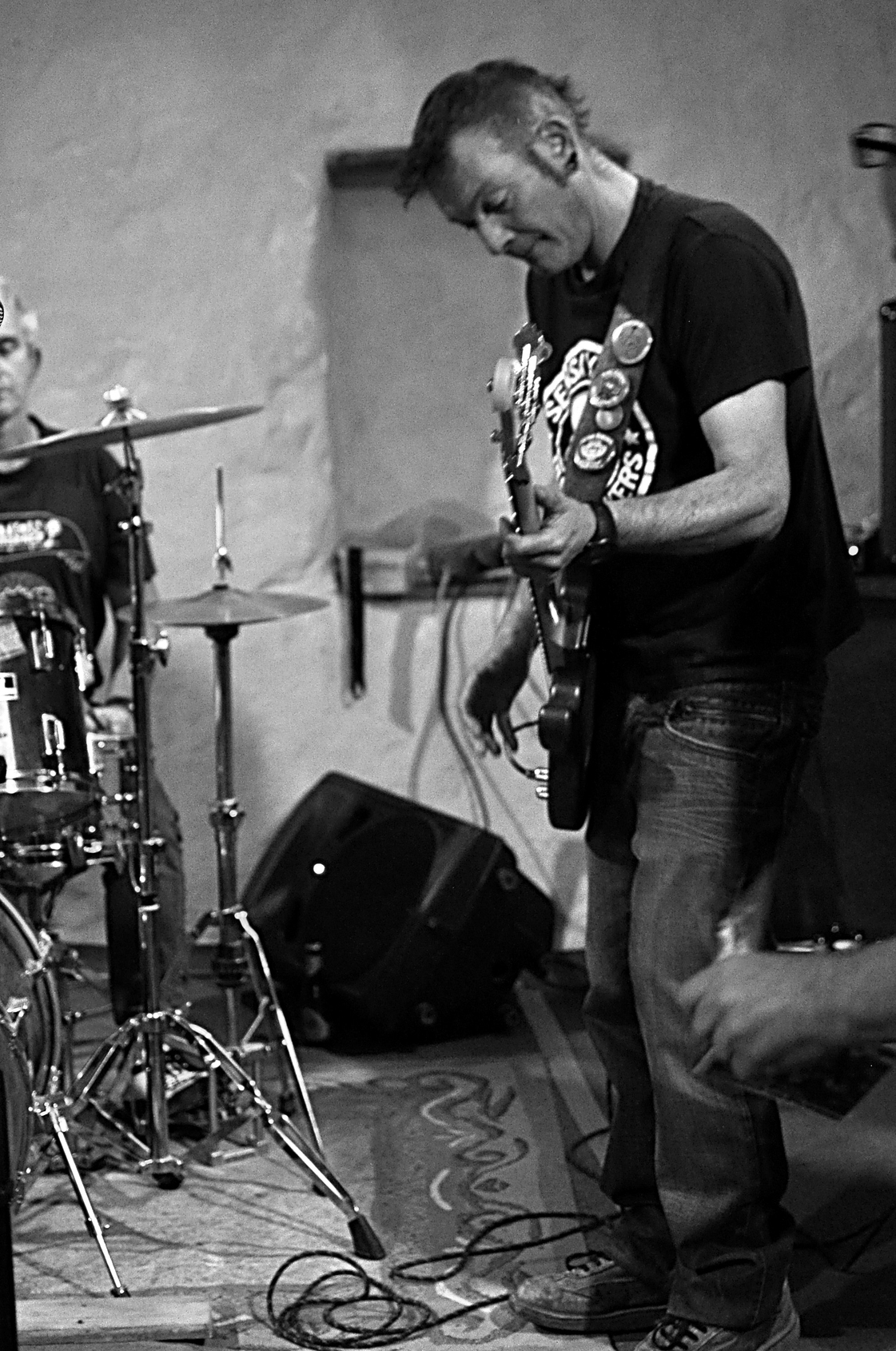Les murs du Renard Mesquin résonnent dynamiquement aux sons des guitares et des drums de ce groupe dont la musique a même décoiffé le photographe . C’est dire !